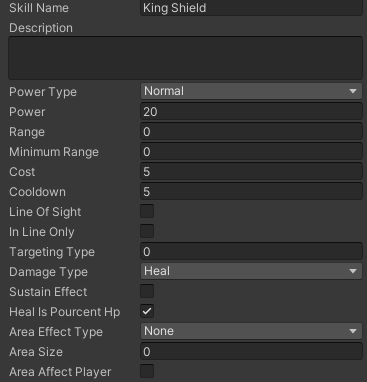 – Damage Type, permet de définir si l’attaque heal, fais des Dégâts physique/magique ou encore aucun dégâts/heals.